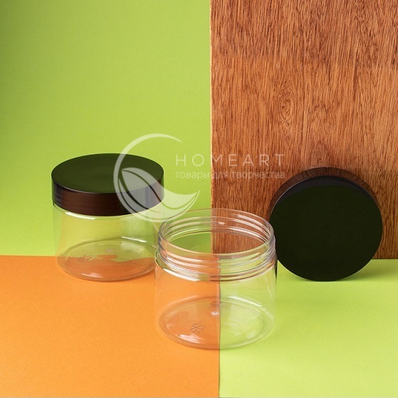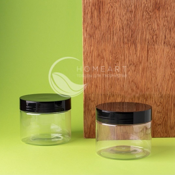 Банка 250 мл ПЭТ, прозрачная с Черной крышкой, для крема