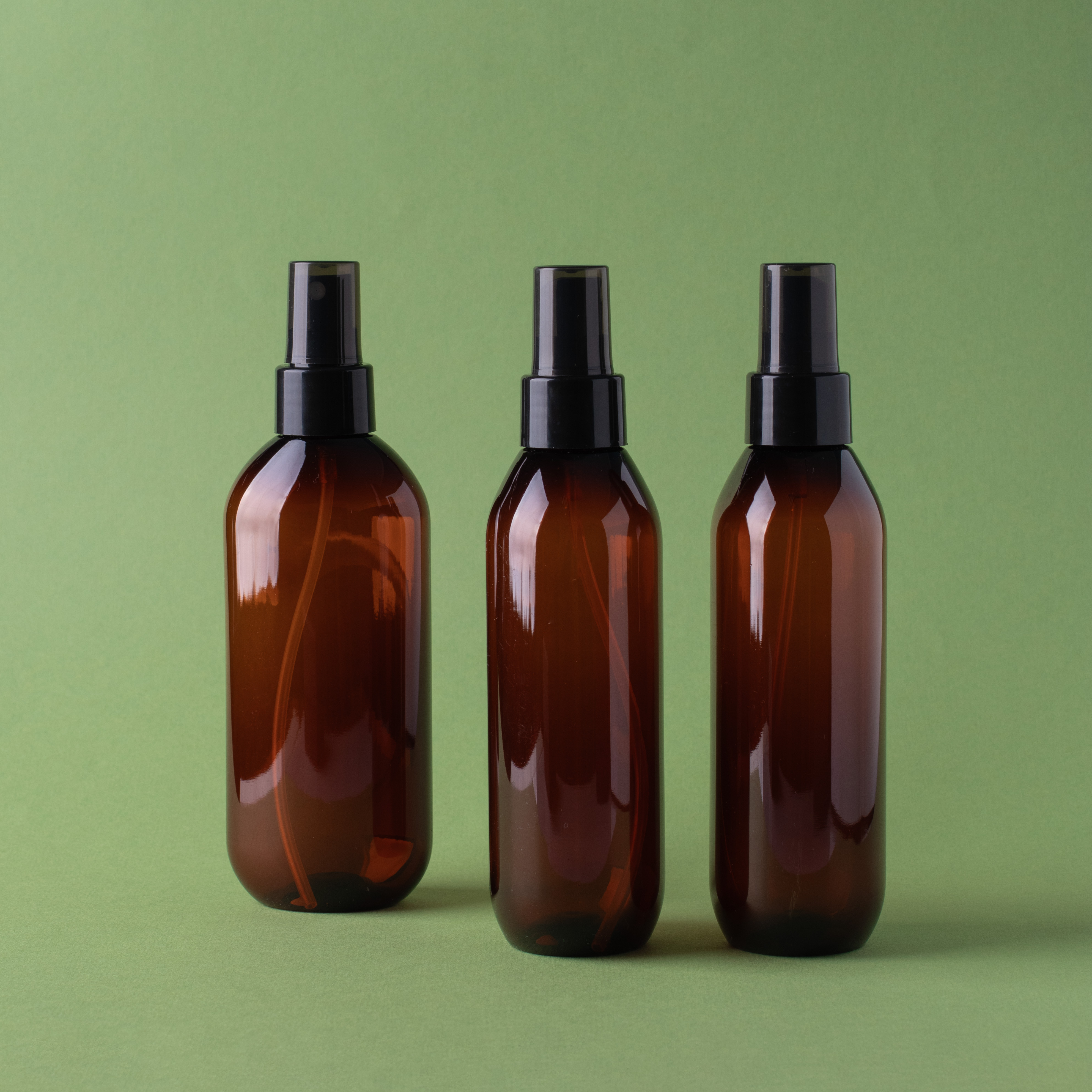 Флакон спрей 200 мл ПЭТ Коричневый , спрей черный