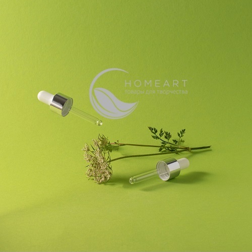 Пипетка стеклянная, под флакон 10 мл, Серебро/ Белая