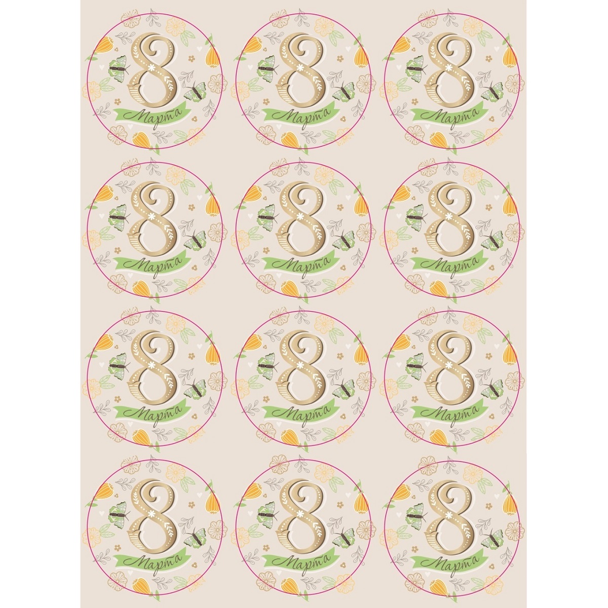 В набор входят 12 наклеек диаметром 40 мм выполнена на самоклеющейся матовой бумаге.